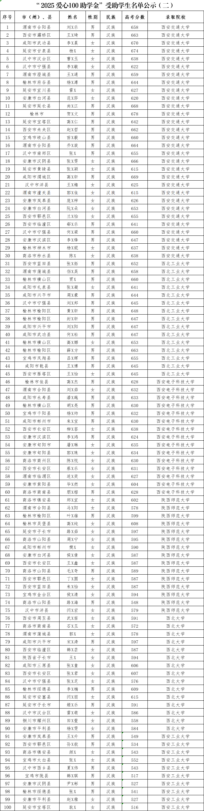 “ 2025 爱心100 助学金”受助学生名单公示(二)